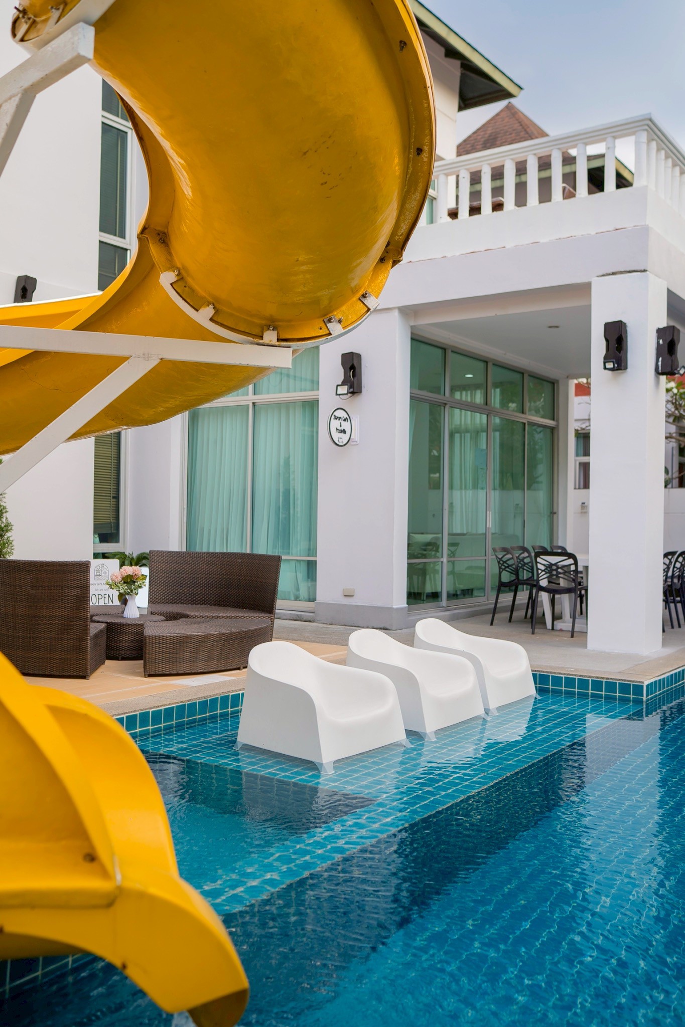 พูลวิลล่า สไตล์คาเฟ่ สไลเดอร์ใหญ่ ใกล้หาดจอมเทียน เพียง 500 เมตร ตกแต่งเพื่อเอาใจสายถ่ายรูป ไม่ว่าจะมุมไหนก็ลงตัวสุดๆไปเลยค๊าซีสสส🥂🥂